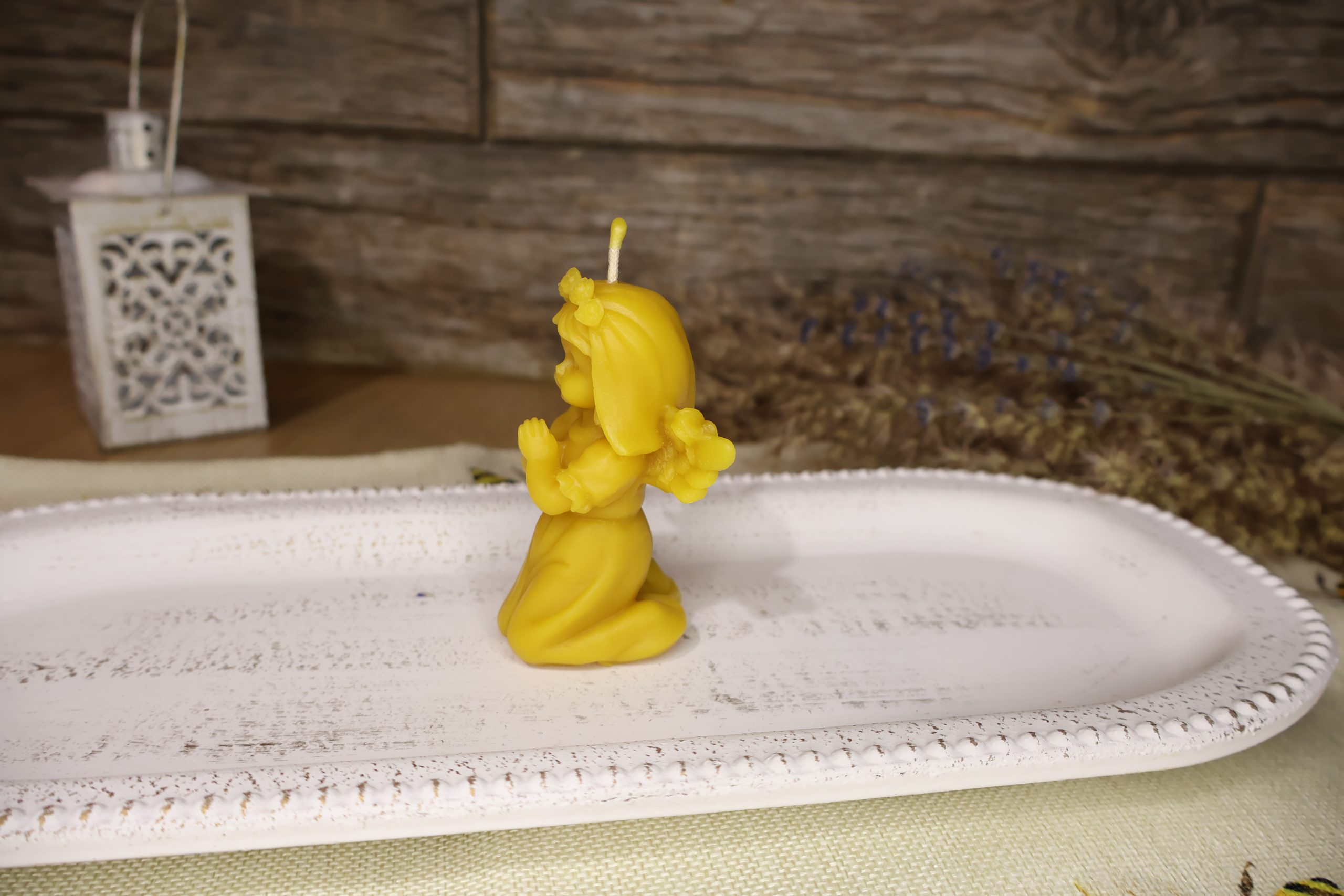 Lumânarea este realizată manual din ceră naturală de albine din stupina propie, fitilul este din bumbac de cea mai bună calitate, specială pentru ceara de albine.